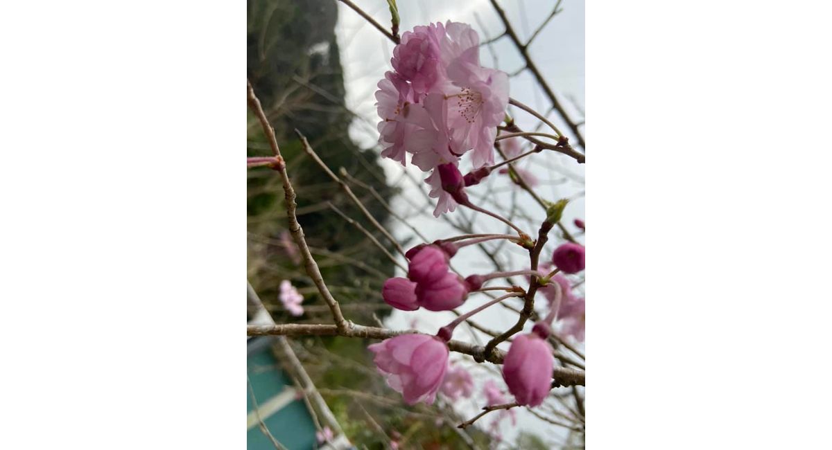 2012年12月の開業当初、ログハウスの庭に植えた枝垂れ桜